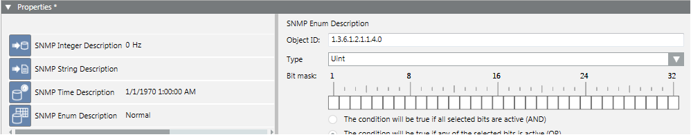 Optional setting that allows verifying some specific bits and activating the event if the defined bitmask matches with the mask received for the SNMP point value.