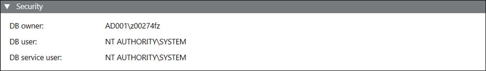 Administration model | Displays the current active status, Automatic or Manual. Automatic: The administration of the History Database is controlled by the system. Manual: The administration of the History Database is controlled by the IT department of the customer. For example, backups or size of the History Database. Therefore, the customer is responsible for the SQL Server administration using the SQL Agent tool. |