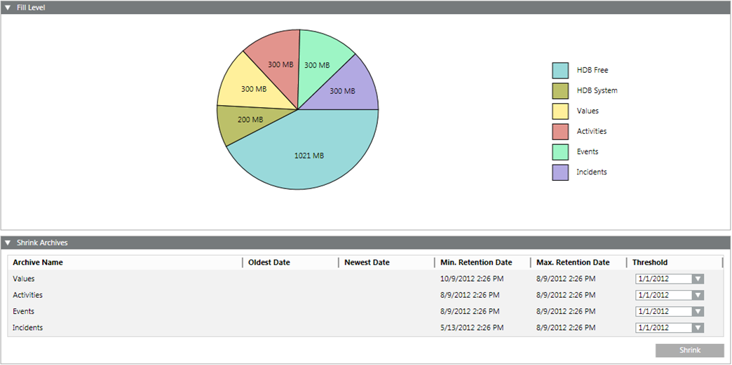Shrink | Deletes data entries up to the defined date. |