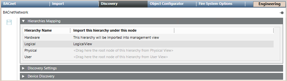 - Import the device using the BACnet Auto Discovery function. For instructions, in 3rd Party BACnet Integration, see Workflow Online Engineering.