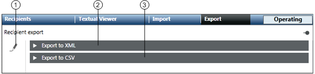 The Export tab allows the user to export recipients to XML and CSV files.