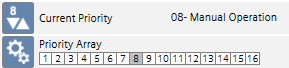 The operator task may only overwrite an output if there is no priority between 1 and 7 pending on the priority array. The value on an active operator task is written at priority 8. As a consequence, only priorities between 9 and 16 can be influenced. Manual changes at priority 8 can, however, influence the operator task.