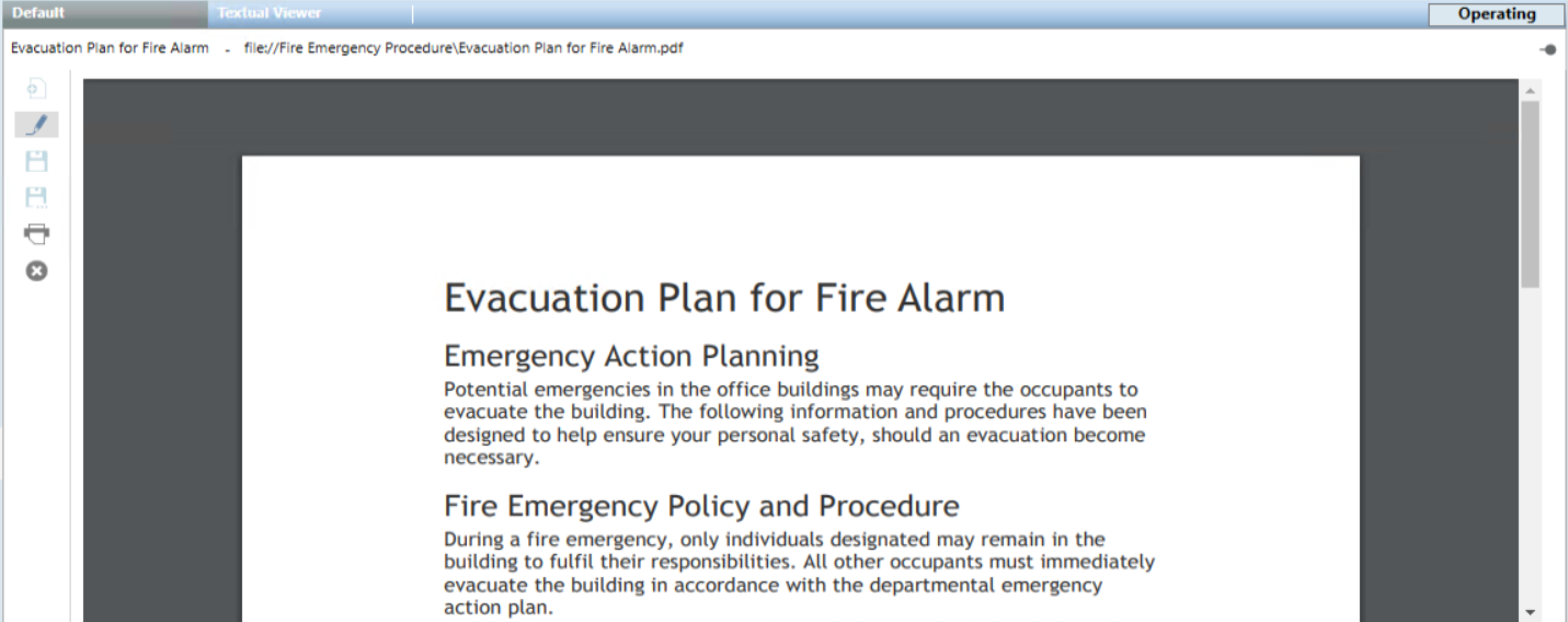 - You want to configure a read-only document in Desigo CC for the operator to consult or print. For background information, see Documents Workspace.