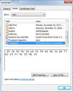 - Click the Details tab, and then find and select Thumbprint in the Field column.