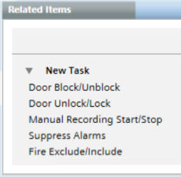 b. Select the target object on which you want to execute the action. For example, Building. - In Related Items, under New Task, select the action you want to perform on this object. For example, Fire Exclude/Include.