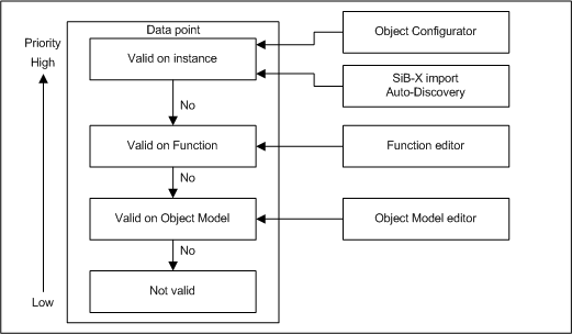 Decisive for the display or evaluation of data are the values that apply based on presettings. You can control the information by selecting or clearing the Valid check box. The following hierarchy applies to the evaluation: