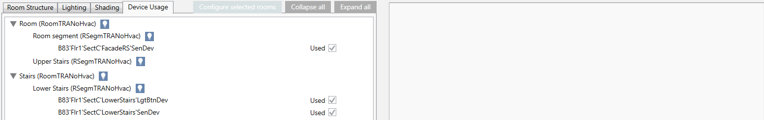 If cleared, no additional configurations are required in the room operator unit for Reconfigure Lighting Control and Reconfigure Shading Control. This simplifies re-selection at a later date if the segment if re-added to the original room.
