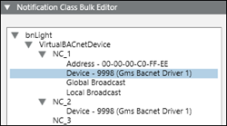 NOTE: To open the Recipient Selection Tree in collapsed form, click SHIFT + the expander. - The management station finds and displays devices with notification class recipients on the BACnet network.