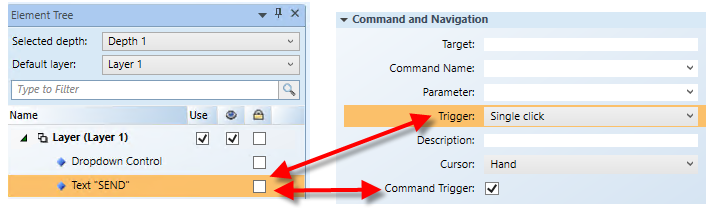 - Navigate to the Element Tree view, select Dropdown Control and hold down the CTRL key and then select Text „SEND“.