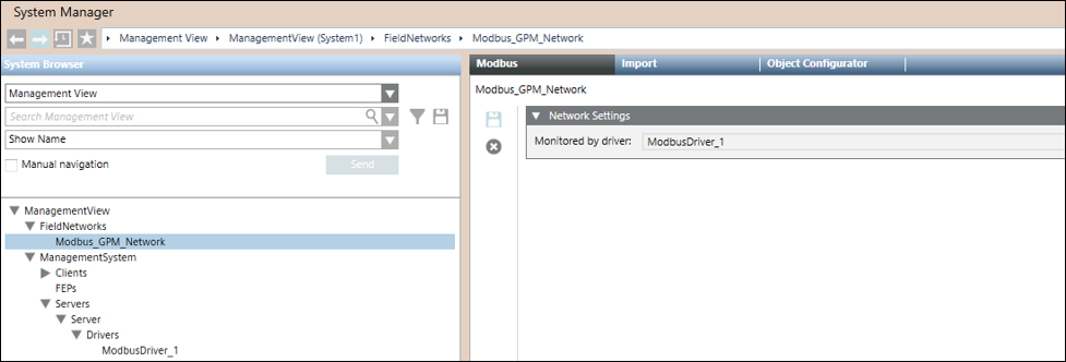 For example: Create Modbus network for Modbus devices, and associate it with the Modbus driver(See Modbus). - Enter Name and Description for the network.