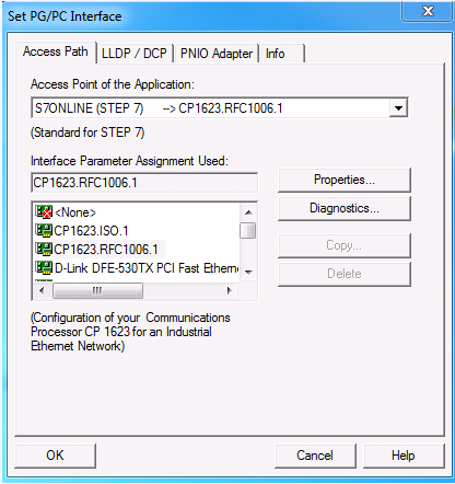 - In the Access Point of the Application drop-down list, select CP1623.ISO if the fault-tolerant connection runs via MAC address (for example, CP443-1EX11).