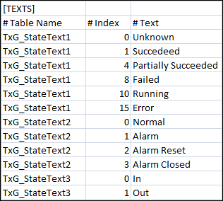 Index | An integer value representing the different states of the text group. |
