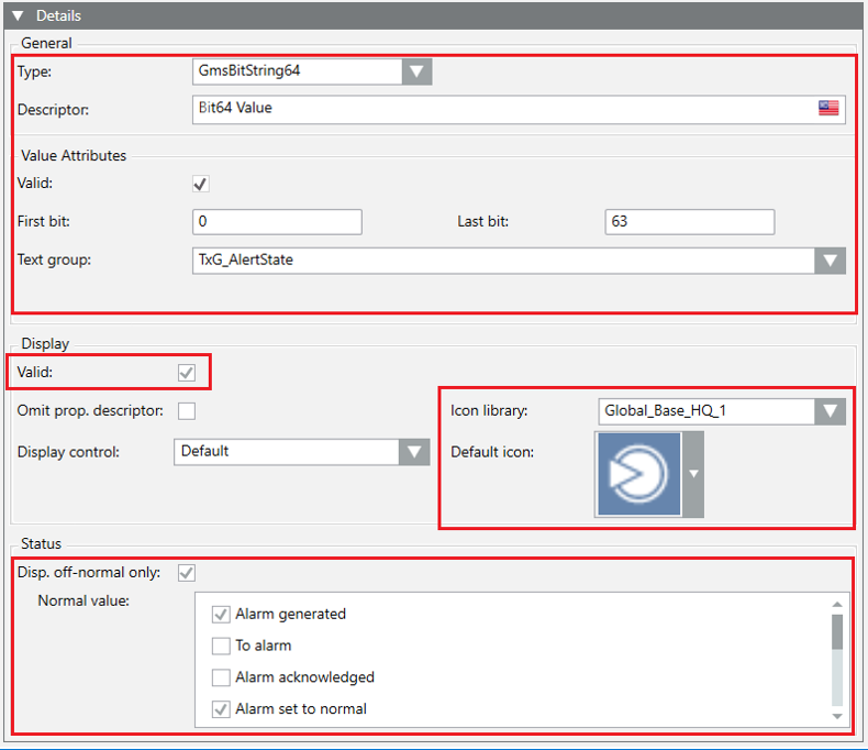 Attributes | Optional | Object containing the attributes of the property. For more details, see Table GmsBitString64 Attributes, below. The empty object (“Attributes”: { }) resets the attributes data. |