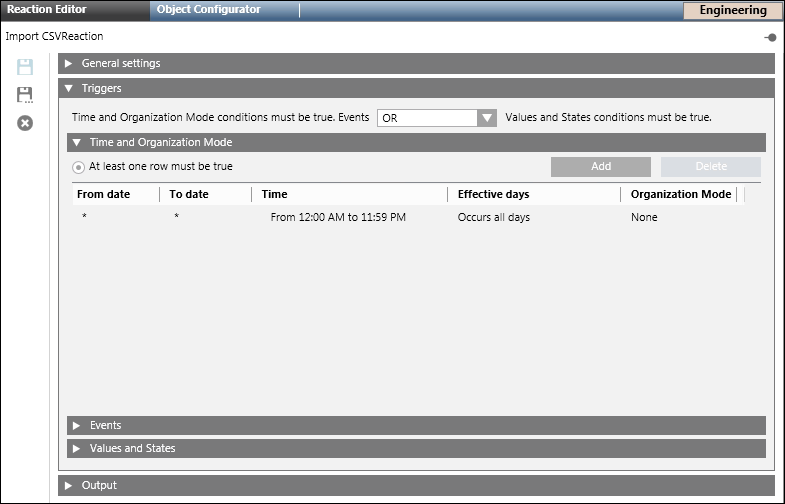 - Click Save As and enter the name and description for the Import CSV Reaction.
