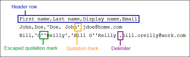 - Quotation mark: Surrounding individual values with quotation marks allows the use of delimiter characters within values. Notification supports single quotes and double quotes as quotation marks.
