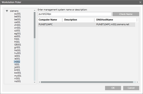 In the Enter management system name or description field, you can type in the full computer name of the server, if you already know it, or you can type a partial text string. Click Check Name to display a list of all workstations in the selected domain whose name contains the entered string.