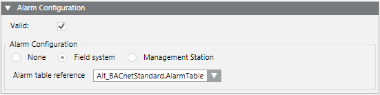 Field system alarms are generated at the level of the subsystem, panel or automation station. Alarm tables are used to map these field events to Desigo CC alarm classes.