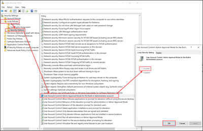 The user must enable the User Account Control: Admin Approval Mode for the Built-in Administrator account local security policy.